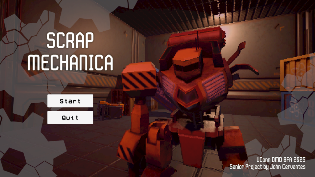 Scrap Mechanica is a 3D action combat game set in the distant future, where corrupted robots have taken over a cargo spaceship. The lone survivor of their incursion must fight back using a most archaic weapon: A rusty, broken-down construction mech. The player must brave deadly traps and defeat menacing machines to escape with their life. With gameplay based on the Dark Souls series, this game stacks the odds against the player through tough combat encounters. This cements them as an underdog capable of toppling titans through the power of human perseverance and adaptation, and emphasizes the narrative that failure is food for growth. With the rise of generative AI and the controversies surrounding its place in the world of art and design, this game is a commentary on how technology is best used as a tool to enhance, not replace, our ability to create and communicate.